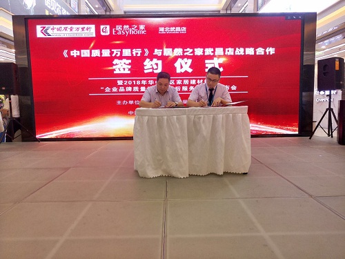 接下來市場調(diào)查部負責人發(fā)布了消費警示報告,隨后居然之家武昌店總經(jīng)理蔡得法先生和《中國質(zhì)量萬里行》湖北中心張旭東主任分別代表合作雙方進行了簽約儀式。