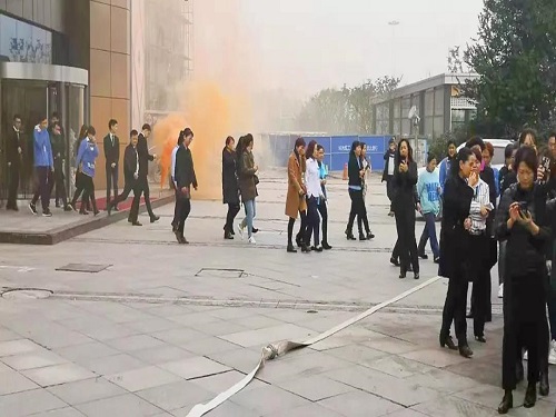 早上8:30,隨著大樓警報聲響起,模擬賣場內(nèi)發(fā)生火情,正迅速蔓延。各樓層管理員迅速組織員工緊急疏散。演習(xí)開始后,員工們用濕毛巾捂著口鼻,彎著腰逃離“火災(zāi)現(xiàn)場”,并迅速關(guān)閉大樓內(nèi)所有消防卷簾,控制“火勢”蔓延,所有員工緊張有序地逃離火場成功疏散到安全地帶。